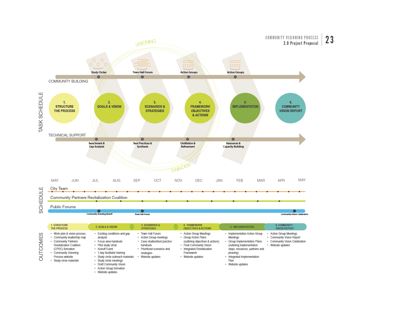 Custom diagram of schedule and outcomes for a project proposal.